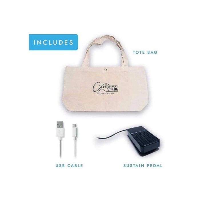 کیف پیانو، پدال ساستین، دفترچه راهنما شرکت، برچسب نت، کابل شارژر